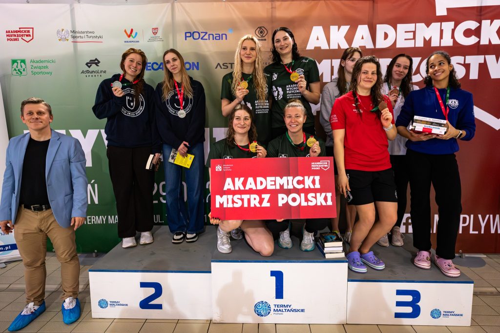 Rok później przyszła poważniejsza scena. Akademickie Mistrzostwa Polski w Lublin. I tam – bez kompleksów – od razu złoto. Sztafeta 4×50 metrów stylem zmiennym, skład uzupełniony przez Weronikę Hallmann i znów Piotrowską, a na tablicy wyników bardzo mocne 1:53.09. To był moment, w którym stało się jasne: to nie jest jednorazowy wyskok, tylko początek czegoś większego.