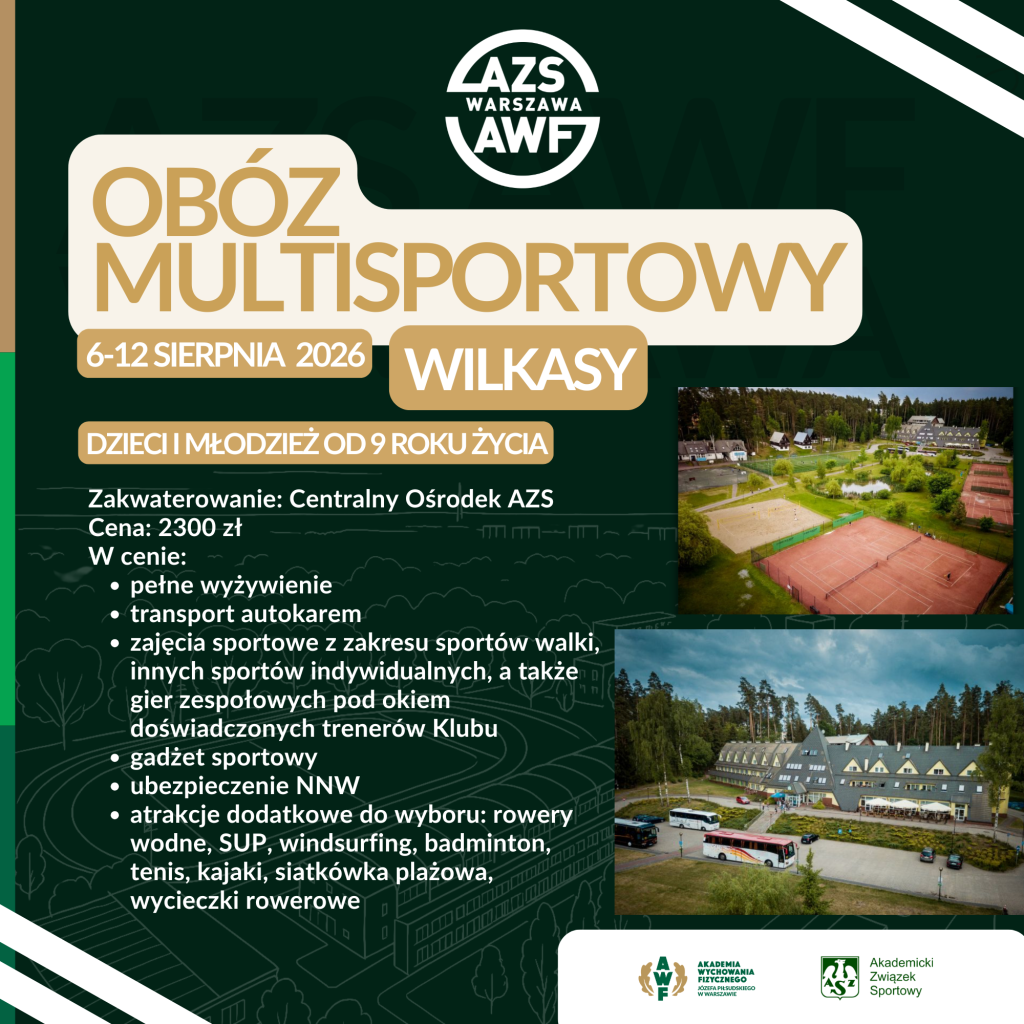 Serdecznie zapraszamy do zapoznania się z ofertą naszego Klubu dotyczącą letniego obozu sportowego, który odbędzie się w Wilkasach w terminie 6-12.08.2026.